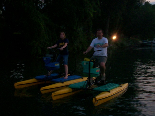 The fun continued after dinner when we went down to the Erie canal to ride waterbikes.  When they told me about them, I was thinking more like a paddleboat, but think more: stationary bike meets pontoon boat.  Well I guess you can just see for yourself: