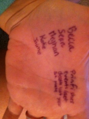 Whenever I found my mind wandering, I came back to the list of names on my hand:
