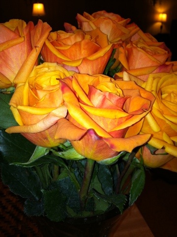 Beautiful peach roses delivered amazing new neighbors.
