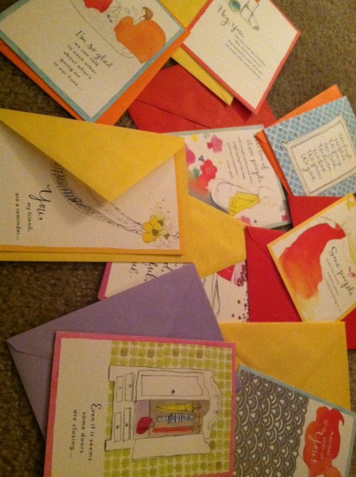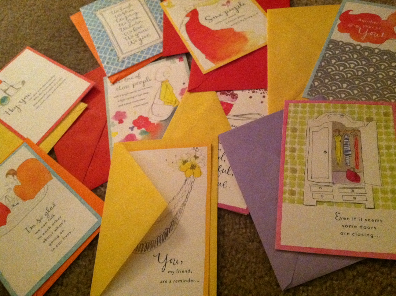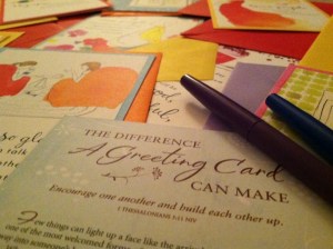As I hunt for a favorite pen and search through the card stash to find the one “just right”, I like to imagine the smile on the recipient’s face when a routine trip to the mailbox leads them to discover a brightly colored, hand-addressed envelope in amongst bills, ads, and other generally disliked mail.  I ponder what kind of day they might be having when it eventually arrives and pray that the words I’m writing here today are exactly what they need to hear there then.  Whether it sits on my desk for a few days before getting stamped and sent out, gets caught in the mail delayed by a holiday or somehow makes it their sooner than expected, I pray that it arrives just when a little encouragement is needed.