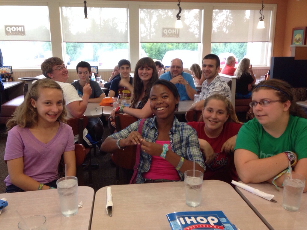 – We surprised the students by taking them to IHOP on Tuesday. They had pancakes for $.56 for IHOP’s 56th anniversary. While our bill was only about $8, many had the idea to tip not only our waiter well, but also the hostess and line cooks. We ended up handing our $45 in tips to workers in the restaurant.