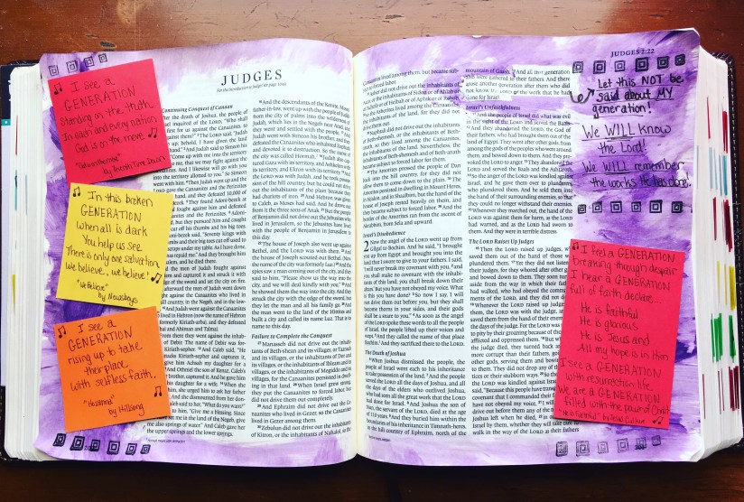 Oh, I see so much of God’s grace in the book of Judges, but I also feel some conviction. I sense the Holy Spirit motivating me to not only be part of a generation that knows and remembers Him, but that makes sure the next generation has that opportunity as well. I want to be part of a time in history where, thousands of years from now, people can look back and say THOSE people acknowledged God in their lives! I want to be defined as a generation who knows God and makes Him known. I want to see passion in the next generation to follow God greater than their sinful nature to wander away.
